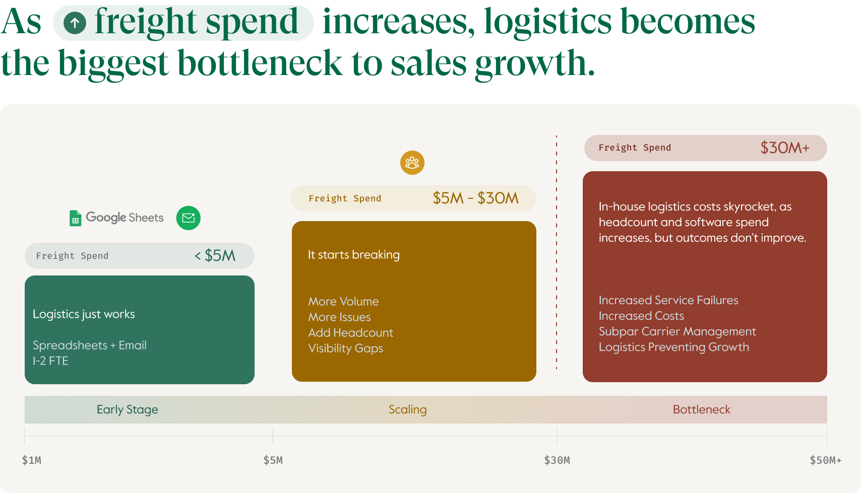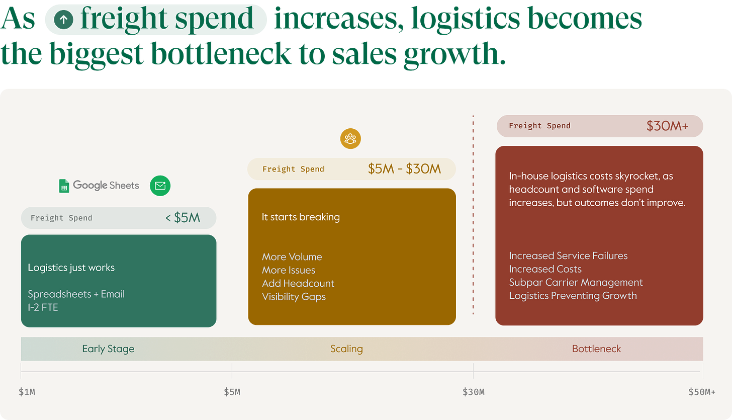 As shippers grow their freight spend, complexity starts to take over. If you’re a growing business with physical products, you’re shipping to different destinations, setting up new facilities, going into new retailers, finding new distributors — and your supply chain starts getting complicated fast.